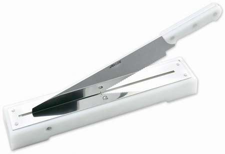 COUPE PAIN SOCLE POLYETHYLENE LAME CRANTEE INOX LG 44 CM